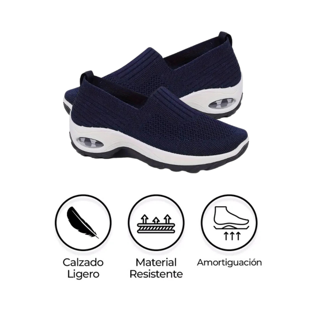 Dile adiós a la incomodidad 👋. Estos slip-on combinan tejido knit respirable, cámara de aire en el talón y suela antideslizante para que camines ligero, fresco y con estilo todo el día.